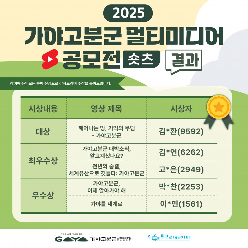 [공모전 수상] 2025 가야고분군 멀티미디어 숏츠 공모전 <우수상> 손교수 0 60 09.23 16:06 https://www.instagram.com/reel/DK9I8sERC0Z/?utm_source=ig_web_copy_lin… + 12 가야고분군 세계유산통합관리지원단 주최로 개최한 <2025 가야고분군 멀티미디어 숏츠 공모전>에서 온라인콘텐츠마케팅반 2학년 박예찬 학생이 <우수상>을 수상했습니다. https://www.instagram.com/reel/DK9I8sERC0Z/?utm_source=ig_web_copy_link