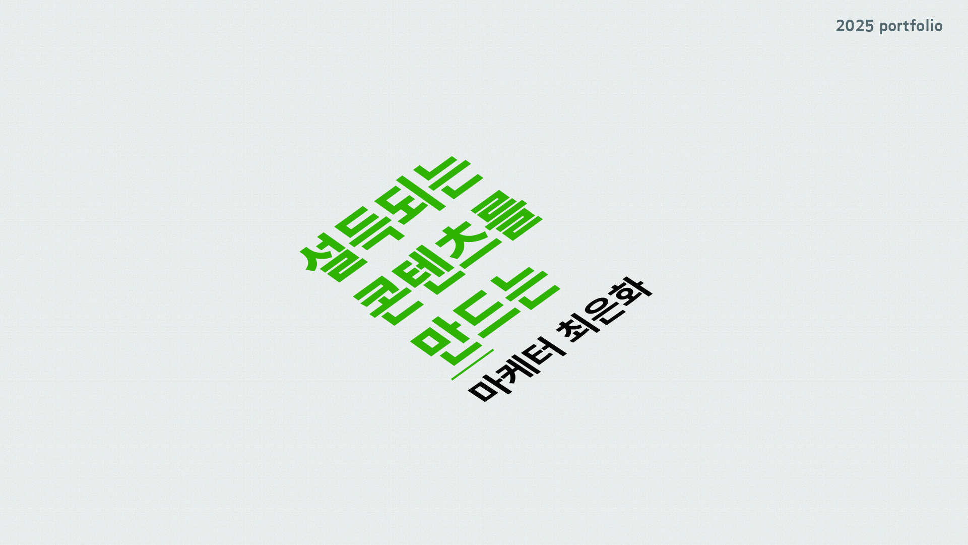 최은화(2026.02 졸업) 학생 choi 0 29 11.15 21:56 2025.11.15 22:36 2406046_최은화_최종.pdf (11.1M) + 0 작품설명 : SNS, AI, VIDEO, VISUAL, PROPOSAL 2026년 02월 졸업 예정자 최은화입니다.주요 작품은 SNS 콘텐츠와 AI 콘텐츠입니다.○ 포트폴리오 Notion 버전 바로 가기