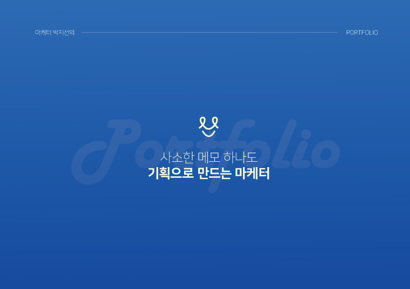 박지선 포트폴리오(2026.02 졸업) 학생 박지선 0 10 4시간전 2025.11.05 01:22 ★박지선_포트폴리오-업로드전용.pdf (16.2M) + 0 작품설명 : AI영상, SNS콘텐츠, 인포그래픽, 콘텐츠제안서 안녕하십니까!2026년 2월 졸업예정자 박지선 입니다.현재 (주)스카이벤처스의 기획부서에 조기 취업하여 AE로서 활동하고 있습니다.포트폴리오 주요 작품으로는 멘토링 프로젝트, SNS콘텐츠 등이 있습니다.○ 포트폴리오 Notion 버전 바로가기○ 포트폴리오 HTML 버전 바로가기